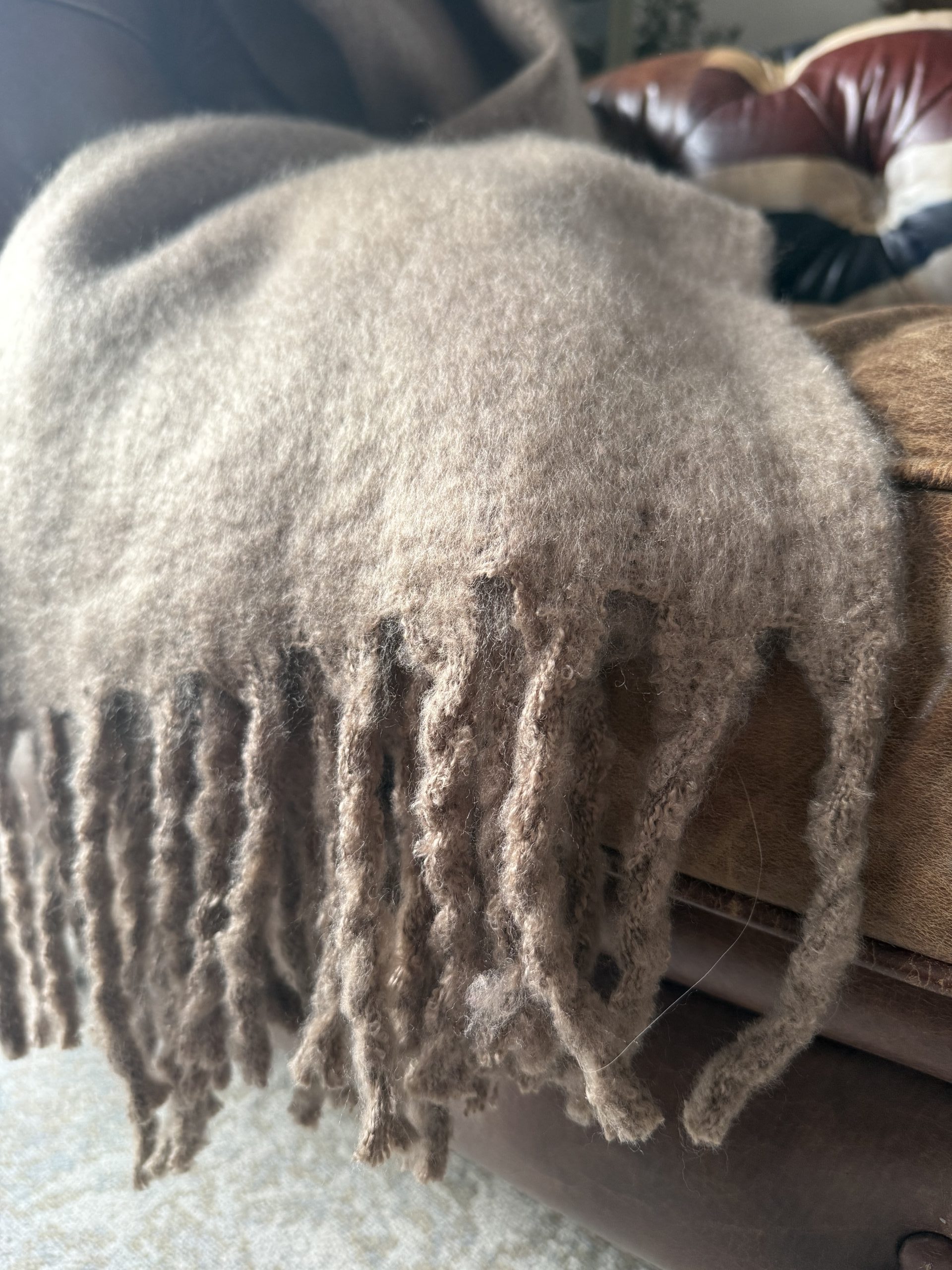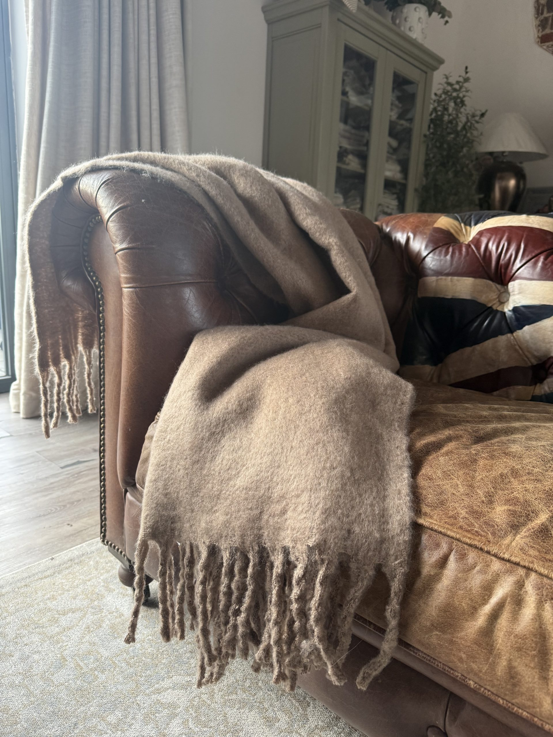 A super-soft faux mohair throw, thick and wonderfully warm, features a subtle brown tone that complements any home interior. Whether draped over a bed, chair, or sofa, or neatly styled in a basket, it adds both comfort and elegance to your space. You and your guests will find any excuse to pick up this throw and curl up in its cosy embrace.